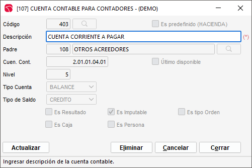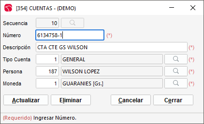 Número: la referencia de código de cuenta.