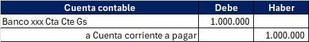 En este caso, al registrar un movimiento de deposito dentro de una cuenta de banco por valor de 1.000.000Gs; el sistema estaría generando el siguiente asiento contable: