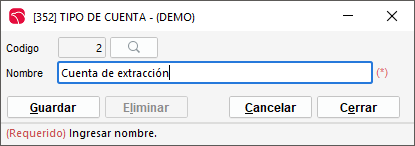 Tipo de cuenta: vinculado al registro informativo, ingresado en el form 352.