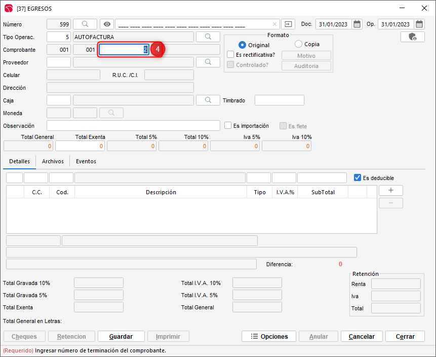 Haz clic en el la tercera casilla del campo de comprobante.露